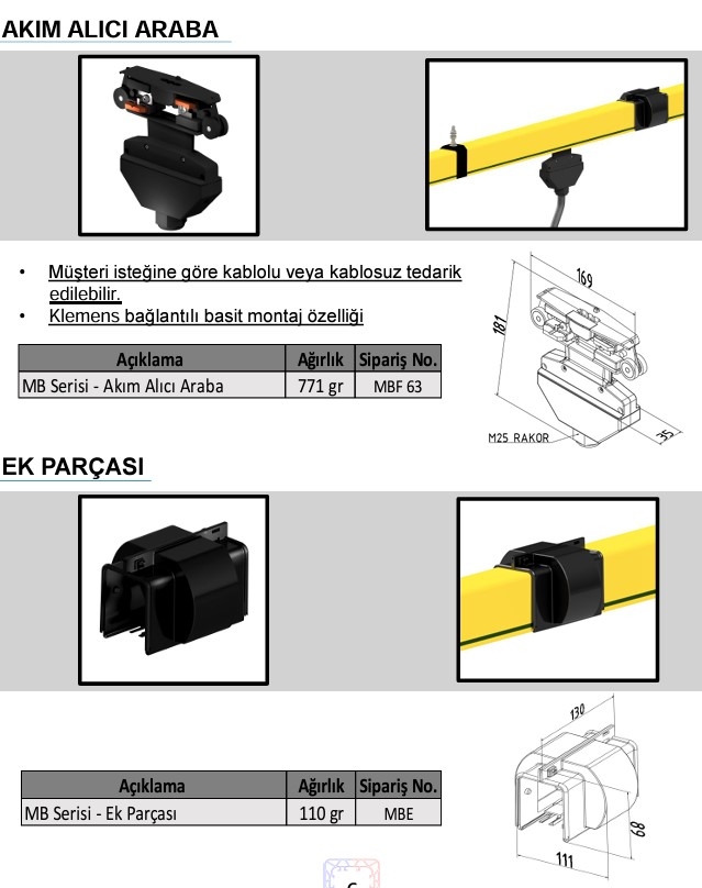 Busbar systems can be mounted and used upon request in various fields such as bridge cranes, monorail cranes, different lifting and transport systems, electric hoists, and elevator systems. They eliminate negligence such as accidents and failures encountered in energy distribution with suspended and pulley cables in classical systems. Electrical energy can be supplied from both the middle and the end of the line. Conductors are enclosed in a box body, ensuring maximum personnel safety. Thanks to this system with excellent conductive properties, it allows high current transfer capacities of 40 amperes, 63 amperes, 100 amperes, 125 amperes, 160 amperes, and 200 amperes.